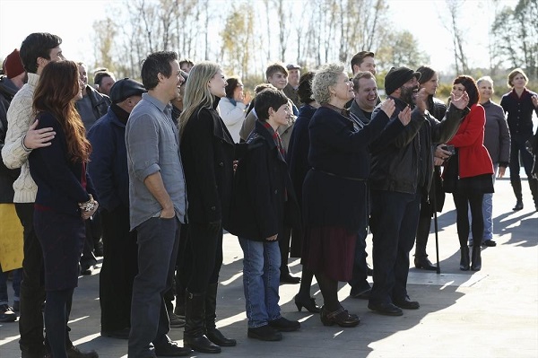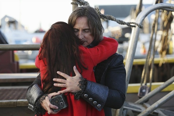 ABC recently released the episode stills for “The New Neverland.” Hook’s ship has safely brought everyone back and we get to see several happy reunions: Rumple and Belle (and Neal!), Wendy, Michael and John, the dwarfs and Snow and Charming. Even Ariel and Eric are on hand to witness the happy celebration.