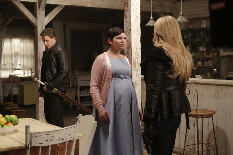 Meanwhile, the photos do show us Zelena continuing to get close to Snow and her baby. What is the witch planning? And why do Emma and Snow look so upset in some of the other photos?