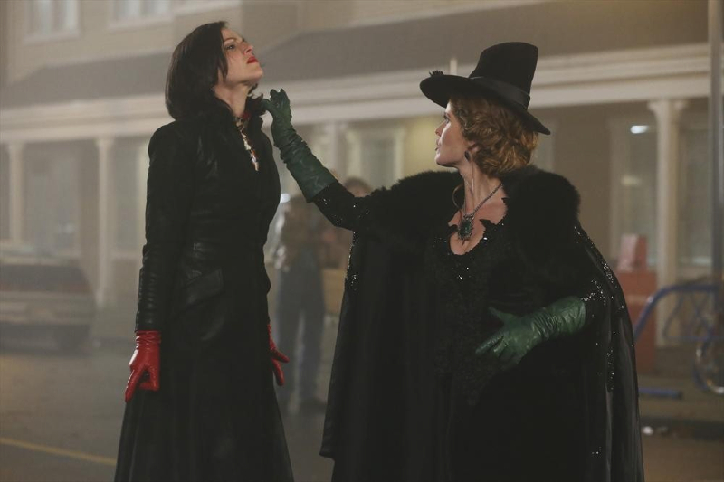 We’re guessing there’s more to the story and even though we’ve already seen the reveal once, it’s going to be fun to watch Regina learn the truth about her connection to Zelena again in Storybrooke. The town residents have gathered for the battle and is it just us or does it seem like Zelena is trying to rip out Regina’s heart? Does she want to kill her or does she need the heart to add to her collection of courage (Charming’s) and brains (Rumple’s)?